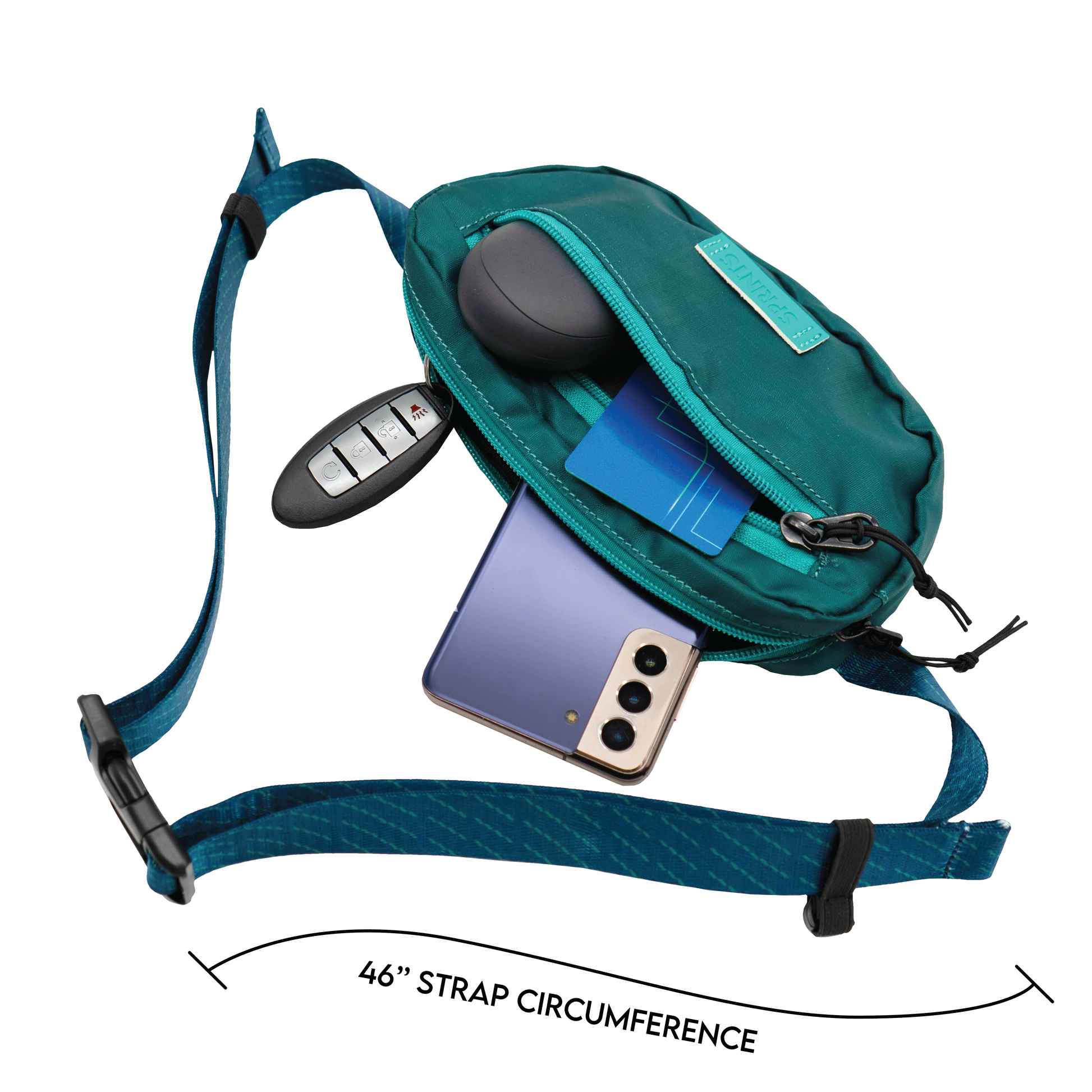 Sprints cross body Sling It bags are here to revolutionize your run. Designed to keep up with your every move, you can say goodbye to annoying bouncing bags and focus on what really matters - rocking your run. At 8” x 4.25” x 1.25” they are the perfect size to fit any iPhone, keys, workout gels, headphones, your wallet, chicken tenders, and more. Two zippered pockets for easy organizing, a removable second strap and a loop for hat storage, so your Sling It isn’t lonely.