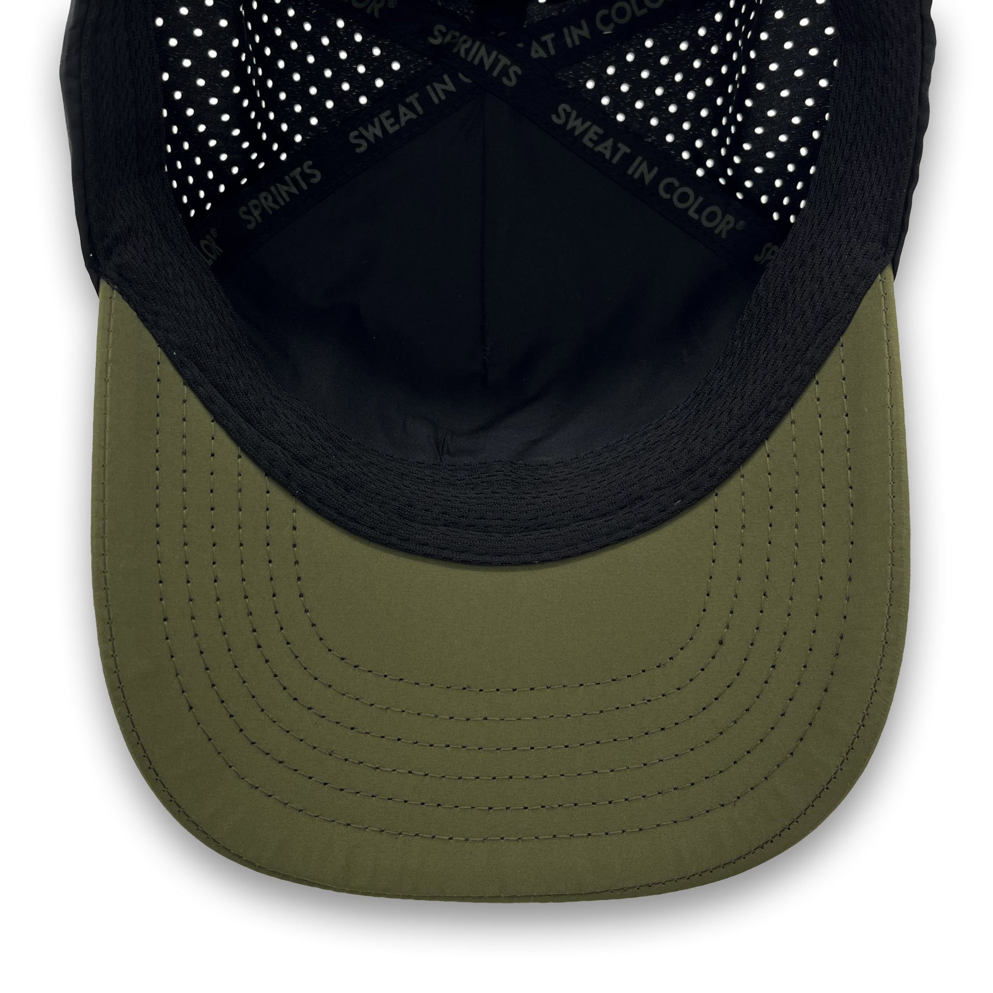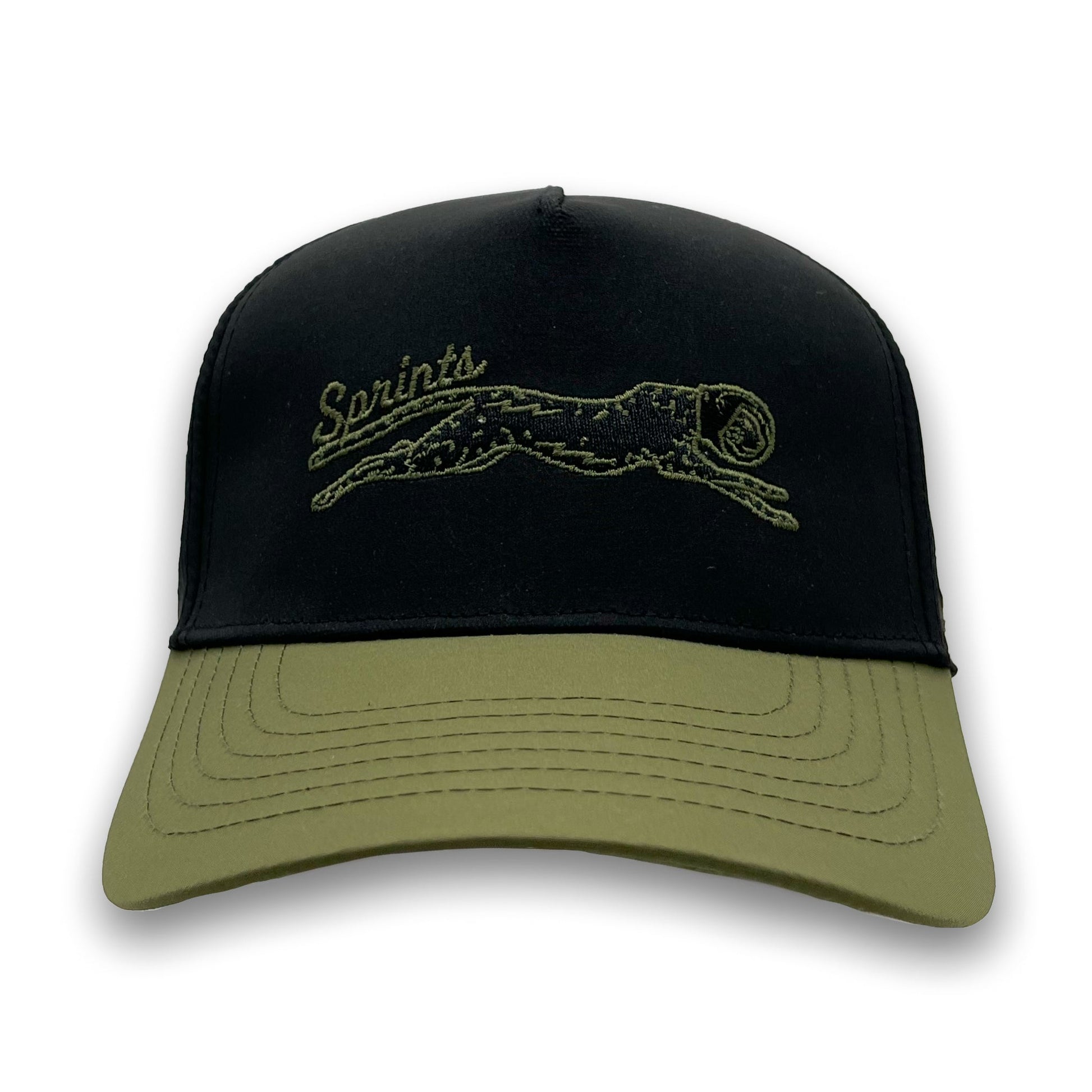 Tough, timeless and dripping with purpose. Rugged, no-nonsense, and giving unwavering confidence. If The Rock and Gal Gadot birthed a hat baby it would be the Sprints Army trucker. The two tone stealth black bucket drips with olive green accoutrements on this snapback VP style hat.