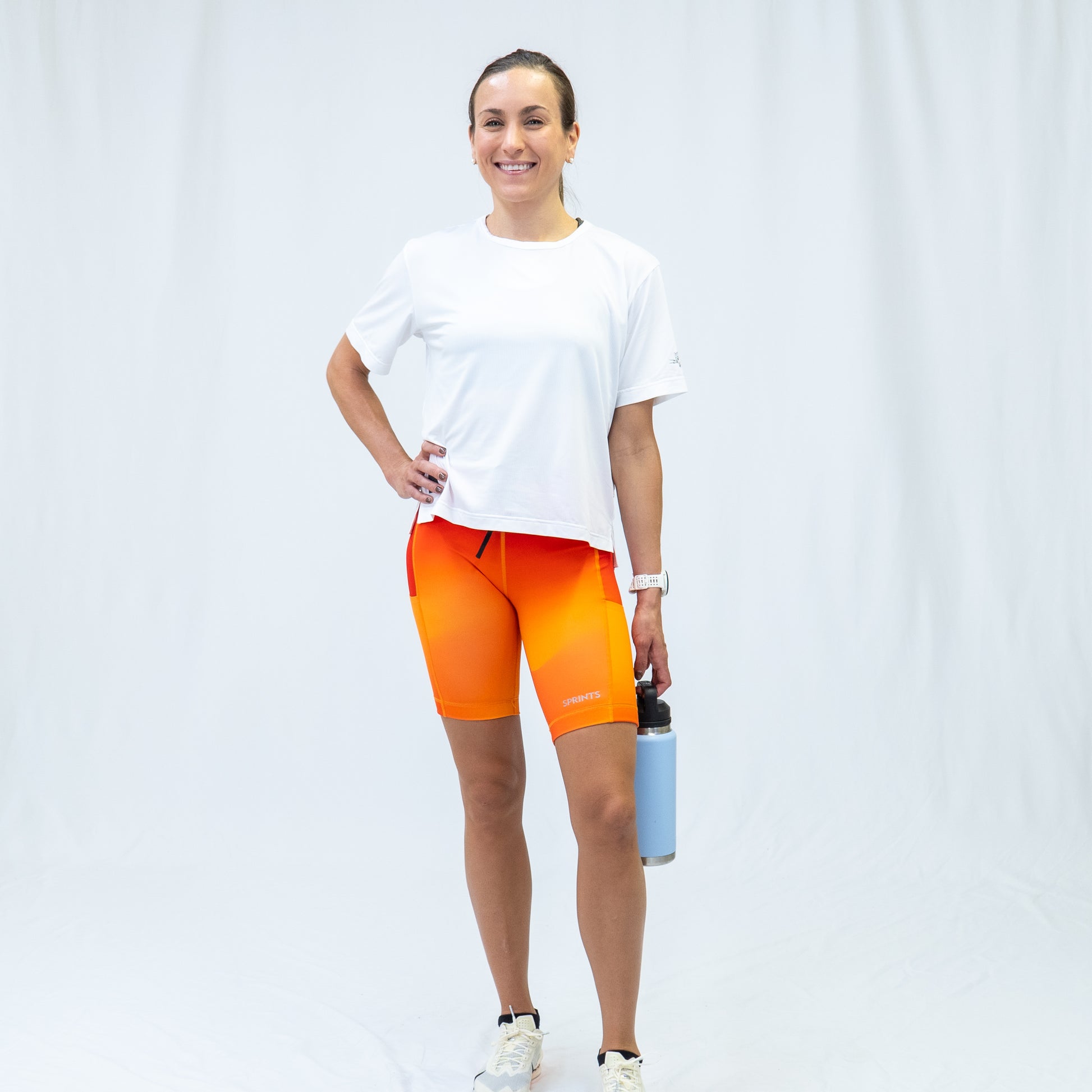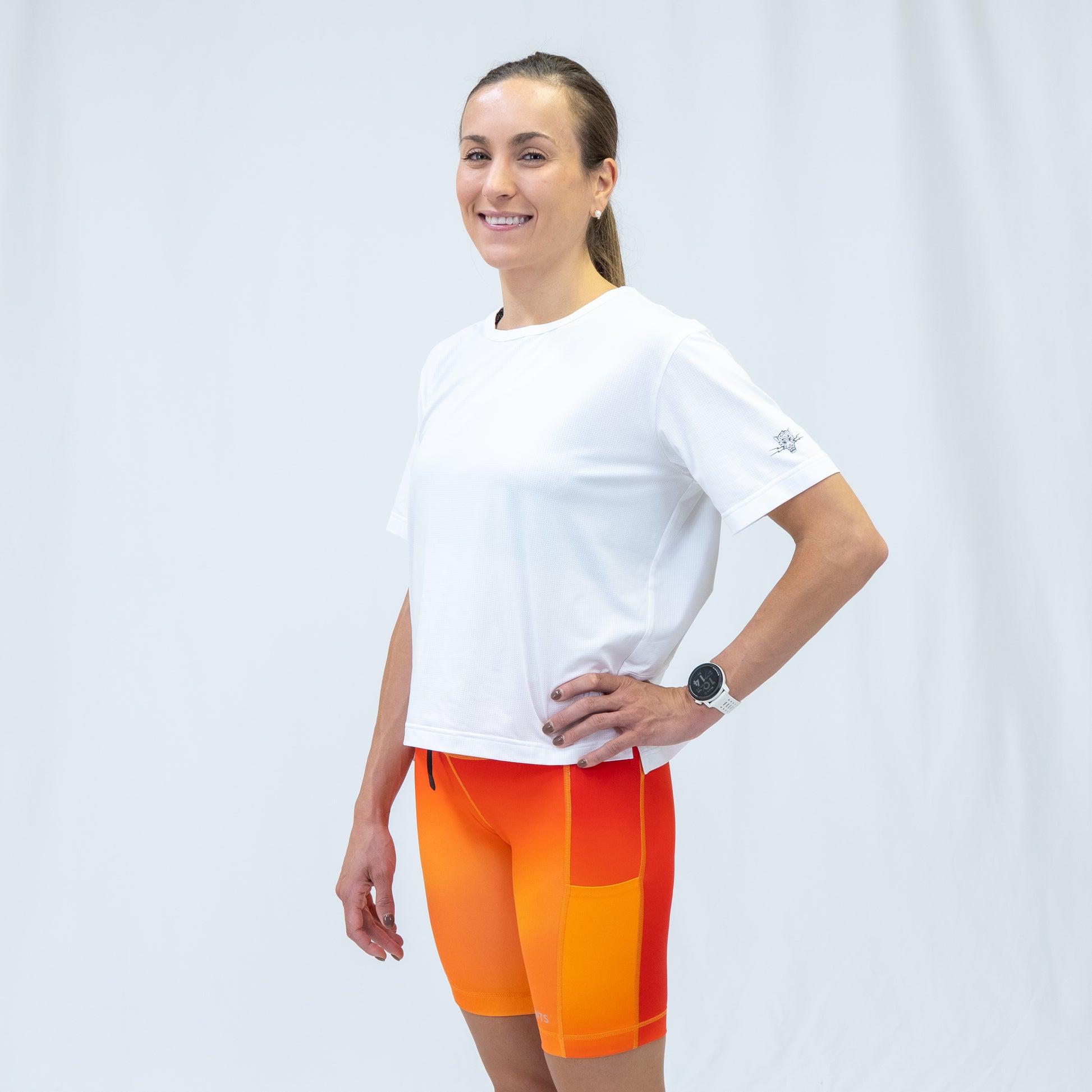 The boxy silhouette with a dropped back hem moves is designed for movement—no adjusting, no distractions.